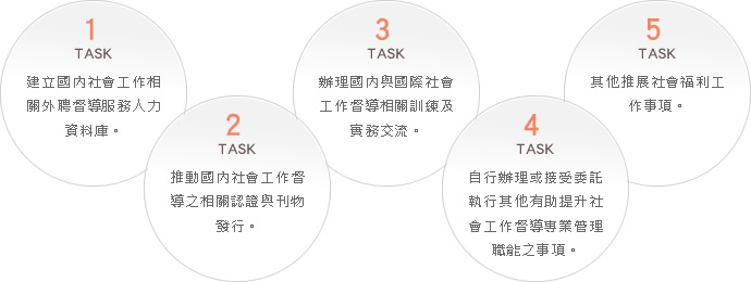 本會自103年設立起即開始發展台灣本土督導專業紮根工作,「督導」一詞在當代社會工作中的價值更加進化為一種「職能」的概念,有鑑於此,本會以下列事項作為主要之任務: