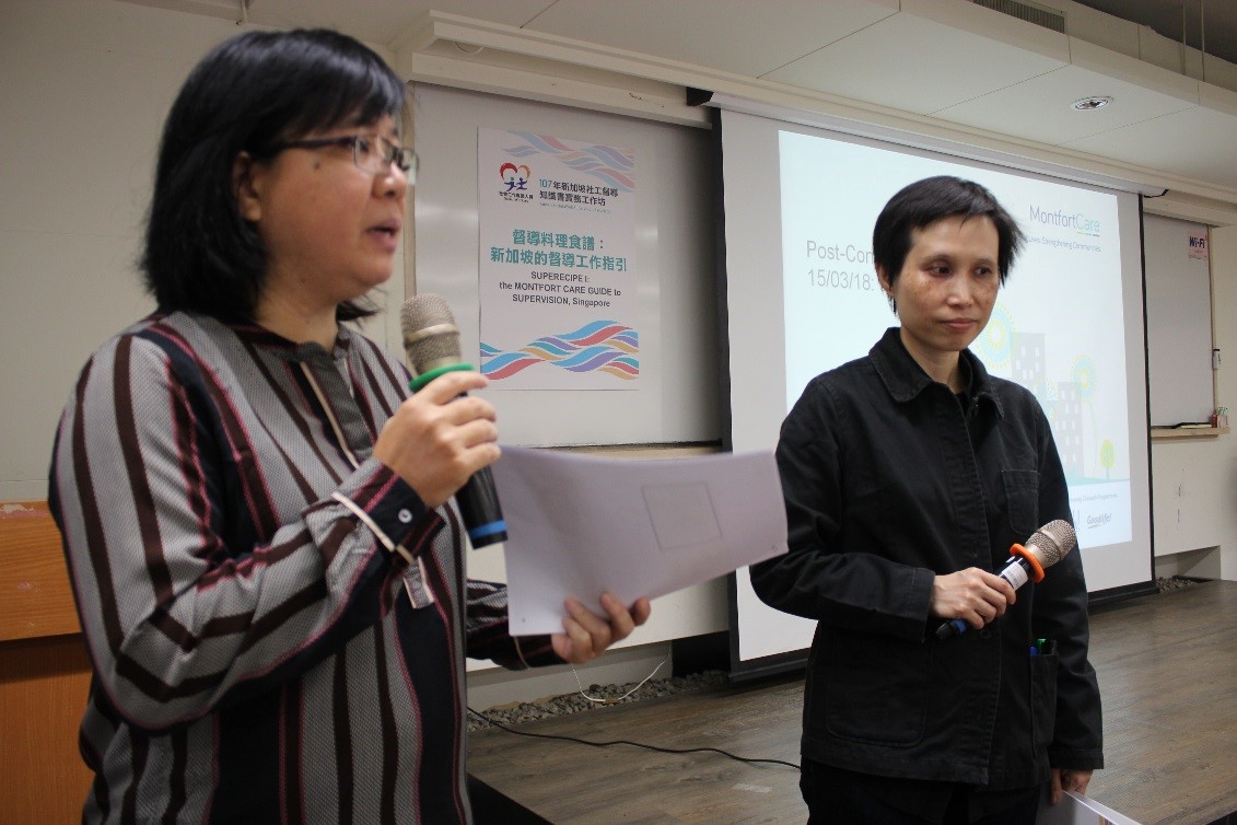 新加坡社會福利組織 Montfort Care 為新加坡重要的民間社會福利組織之一,長年致力於推動社區支持性服務及社會工作專業深化,享譽國際。本次工作坊邀請新加坡社會福利組織 Montfort Care 推薦舉派該會Ms. See Yim Low 首席社工及 Ms. Faith Png 資深社工來台共同授課,講授新加坡督導工作的內涵與經驗,及安排一小時回應與討論時間,供與會者與講師間即時地互動、交流和回饋。