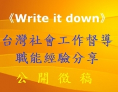 《Write it down~台灣社會工作督導職能經驗分享 》公開徵稿 【指導單位】:衛生福利部 【補助單位】:公益彩券回饋金 【主辦單位】:台灣社會工作督導服務協會 ...