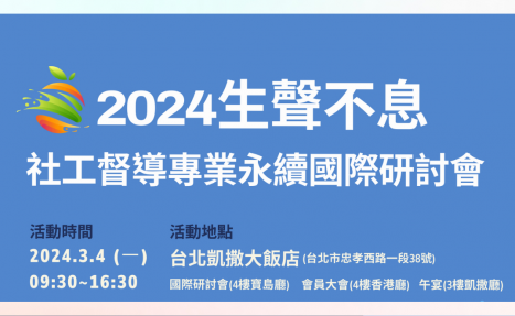 〔活動預告〕本會十週年慶系列活動之一《2024生聲不息-社工督導專業永續國際研討會》▪︎〔時間〕113年3月4日(一)整天▪︎〔地點〕台北凱撒飯店四樓寶島廳▪︎〔聯合主辦單位〕台灣社會工作督導服務協會、見賢思琪社會福利公益基金會。歡迎各位曾任或現任督導職級以上之實務工作先進保留時間參與!
