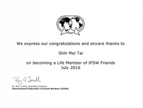 狂賀!本會戴世玫理事長受邀成為《國際社會工作者聯合會》( IFSW)個人終身會員