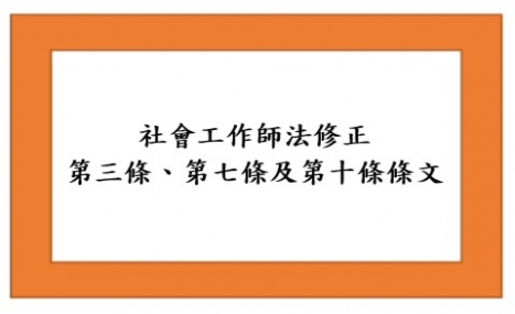 社會工作師法修正第三條、第七條及第十條條文 (連結如下,取自總統府公報查詢系統)